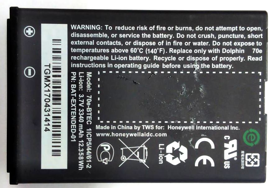 Battery 70e-BTEC for Honeywell Dolphin 70E Mobile Computer 3.7V 3340mAh 12.358Wh