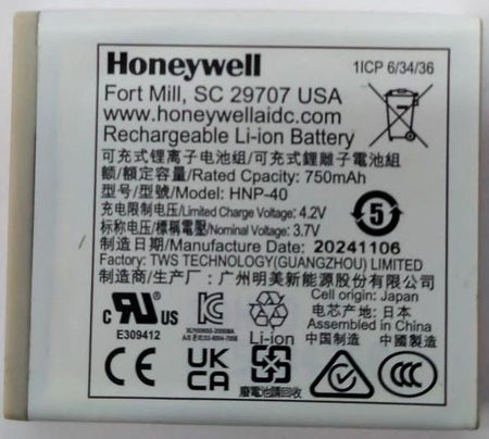 Honeywell Voyager 1602G Scanner Battery 750mAh 4.2V HNP-40 Genuine OEM