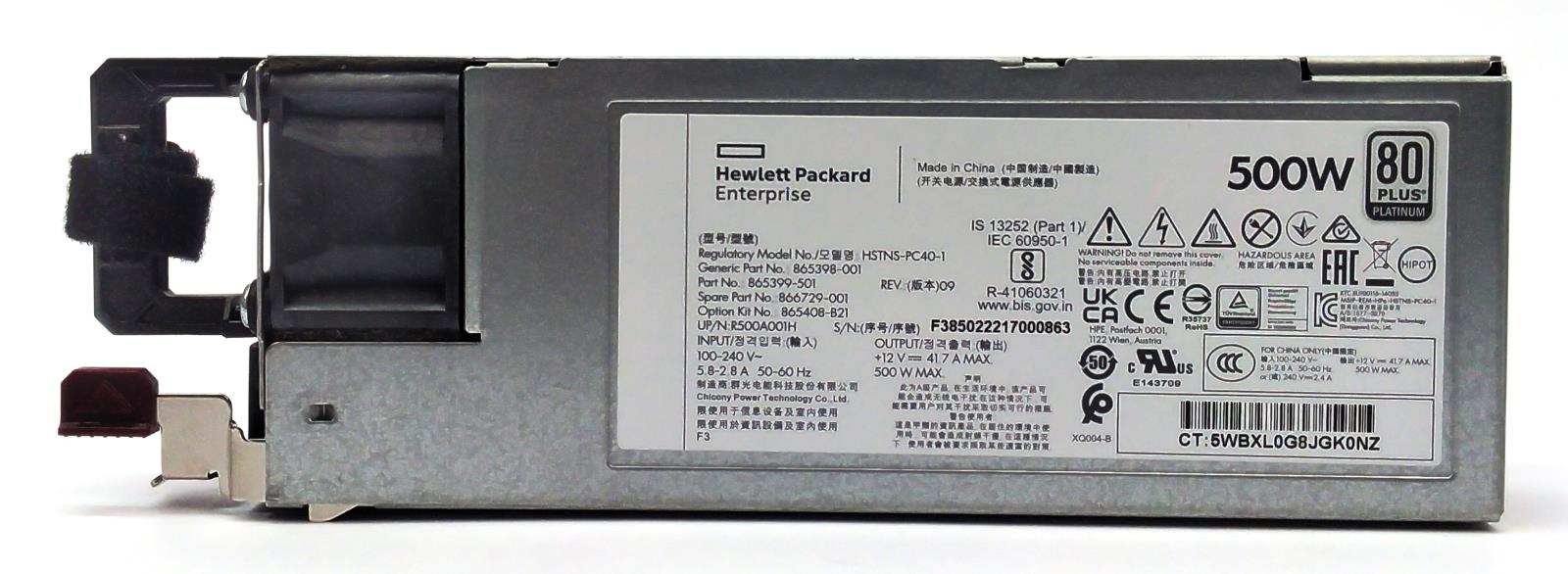 HPE 865399-501 ProLiant Gen10 Server 500W Power Supply Platinum Flex Slot 80+