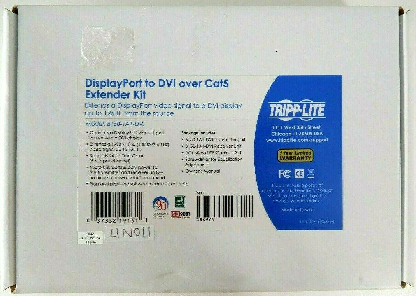 Tripp-Lite B150-1A1-DVI Displayport To DVI Over Cat5/6 Active Extender Kit