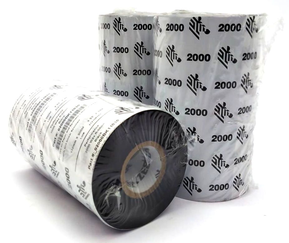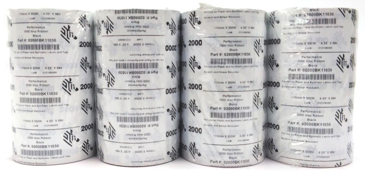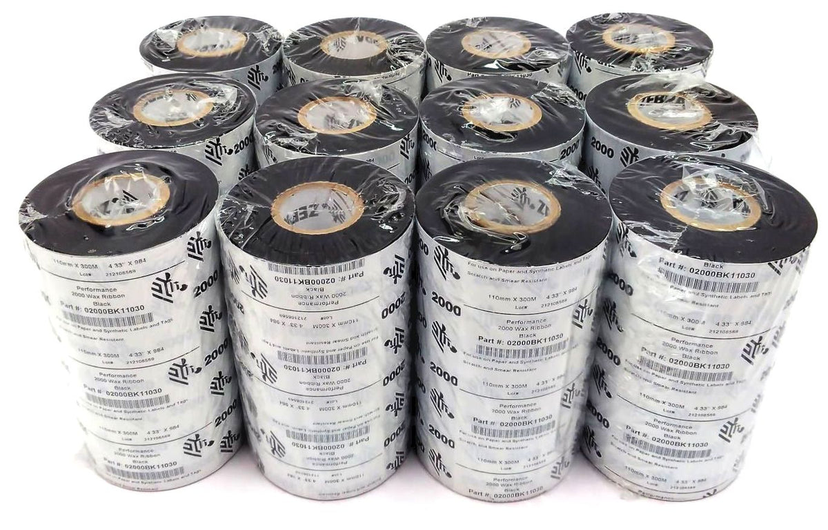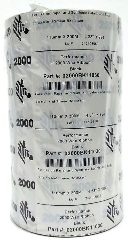 Zebra 4.33" x 984' Performance 2000 Wax Ribbons 02000BK11030 Genuine - 22 Rolls