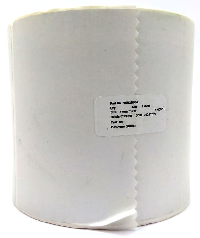 Zebra 4" x 6" Z-Perform 2000D Genuine OEM Thermal Transfer Labels 10010034 - 6 Rolls